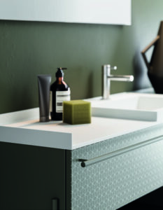 La maniglia Industrial è un segno estetico e funzionale: riprendendo le linee della collezione Industrial, diventa un comodo porta salviette fronte anta