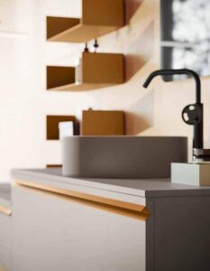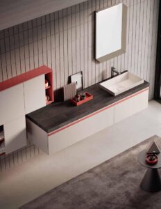 La collezione Poker del sistema Re-Start si distingue per i suoi mobili bagno moderni particolari, caratterizzati dall’apertura a gola dal design essenziale e grafico. Il tratto orizzontale guida una composizione lineare, ordinata e personalizzabile. Finiture opache e palette raffinate creano un equilibrio perfetto tra estetica e funzionalità. Poker è una collezione giovane e vivace, raffinata ma senza rigidità. È la scelta perfetta per chi desidera un arredo versatile e capace di valorizzare l’intero ambiente.