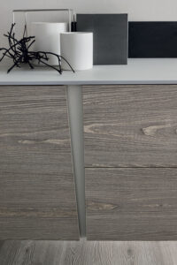 La collezione Wector ridefinisce l’arredo bagno geometrico e moderno attraverso un segno obliquo deciso: la maniglia gola integrata. Questo dettaglio, che si distingue per leggerezza e personalità, può essere tono su tono o a contrasto con frontali e top, diventando un elemento estetico e funzionale. Le finiture spaziano dall’HPL effetto ruggine al legno grezzo, dal laccato al metallo, dando vita a un mix ricco di carattere. Il gioco dei contrasti, ispirato al mondo del fashion e del design nordico, dà forma a un bagno dinamico, originale e dal forte impatto visivo.