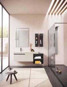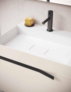 Re-Start Line est l’âme la plus flexible de la collection, pensée pour ceux qui souhaitent une composition de salle de bain entièrement personnalisable. Des portes push-pull, essence du minimalisme, aux façades avec poignées appliquées, chaque choix esthétique reflète un style unique. La poignée XL, un élégant profilé métallique façonné, apporte caractère et fonctionnalité, tandis que la poignée Shape, ton sur ton, se fond avec les surfaces en réinterprétant la porte comme élément architectural. Re-Start Line est la solution qui place la liberté de conception au centre, avec une approche versatile et personnalisable.