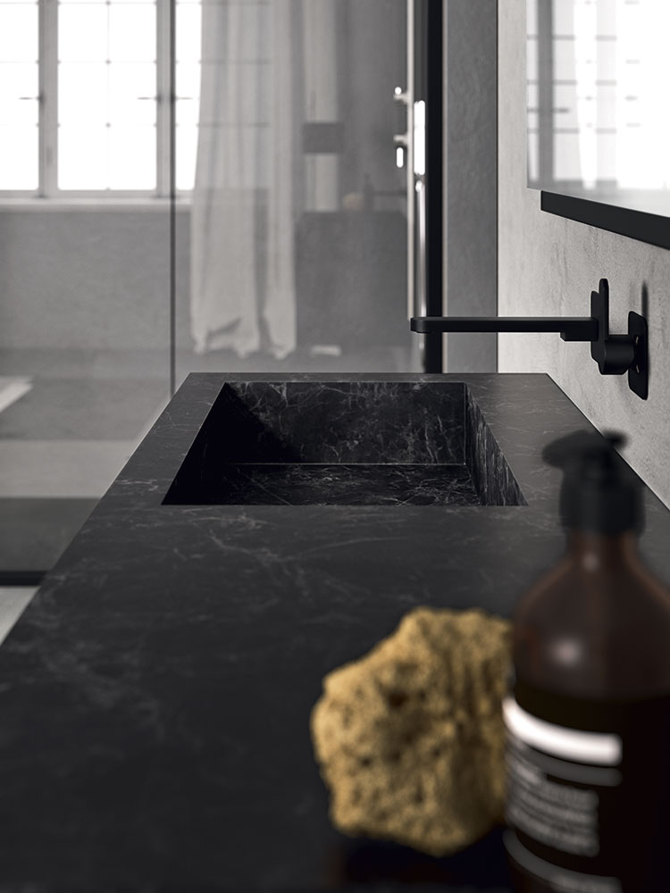 Il bagno grigio scuro della collezione Petra di Artesi si contraddistingue per i suoi tratti moderni. Una linea continua, un segno morbido che sagoma i frontali della Collezione Petra conferendole pulizia formale e praticità. La particolare sagomatura dell’anta crea una “gola” che permette una facile apertura mantenendo invariata l’estetica lineare.