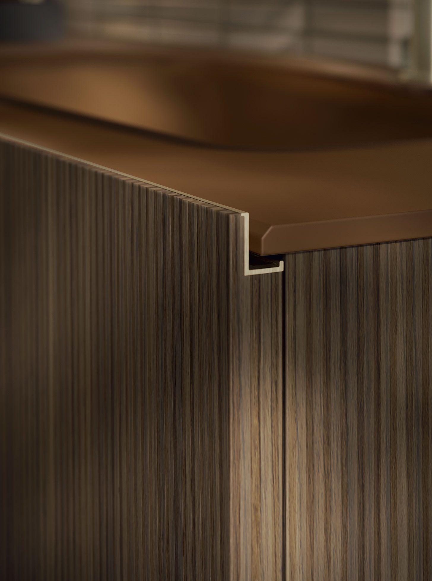 Mobile in finitura Linea Wood, apertura con profilo Nichel