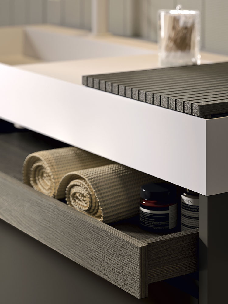 I mobili sospesi moderni della collezione Petra sono un sistema evoluto, capace di svilupparsi nello spazio attraverso le sua vasta modularità e sfaccettata matericità, adattandosi ad ogni tipo di esigenza funzionale ed estetica. Petra veste il tuo bagno con rigore, eleganza e naturalezza.