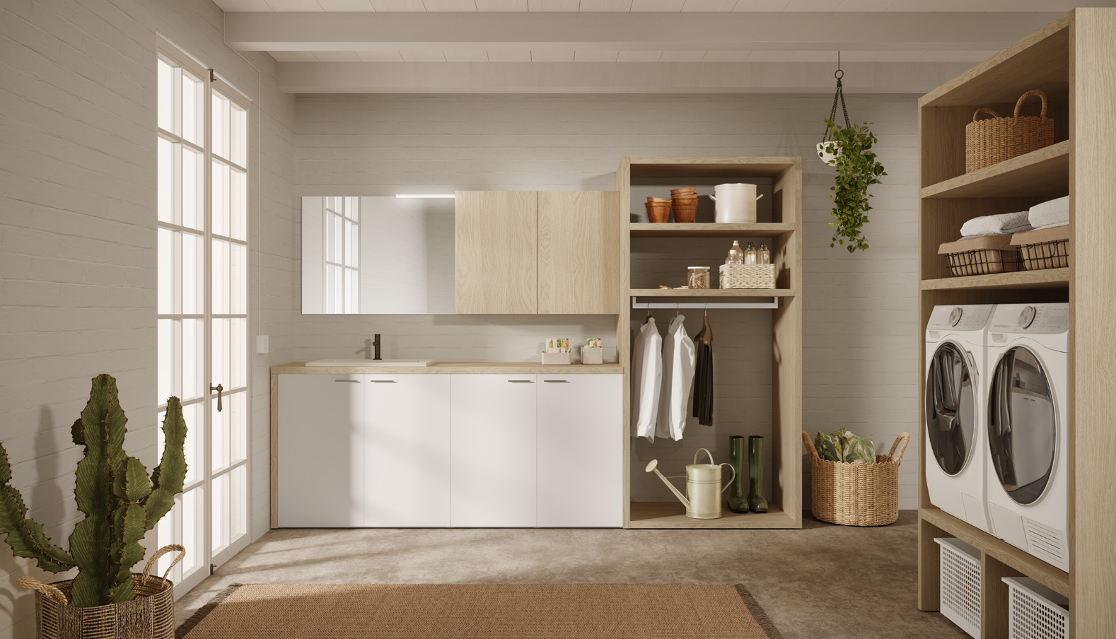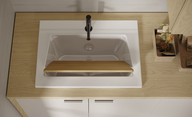 Negli arredi per lavanderia della collezione Passepartout di Artesi potrai trovare un comodissimo vano orizzontale rialzato per lavatrice ed asciugatrice, cesti portabiancheria in metallo Bianco con ruote e un Lavatoio modello Ice 60 in ceramica con tavoletta in legno. Inoltre la nostra linea è in grado di adattarsi perfettamente ad ogni spazio della tua casa.